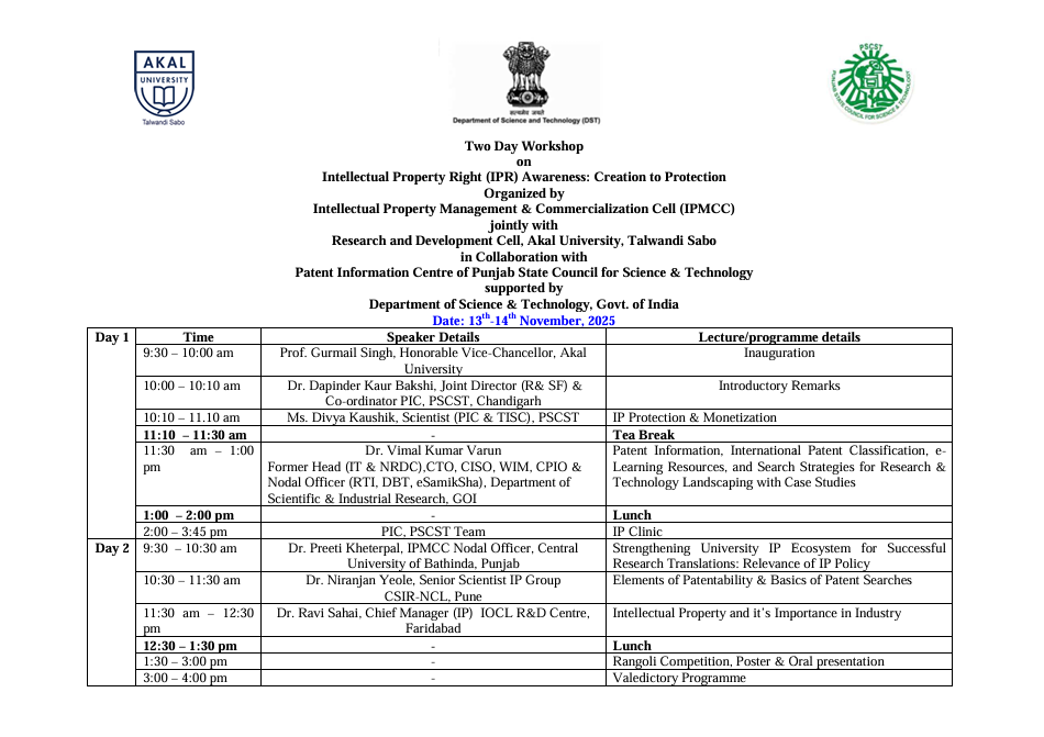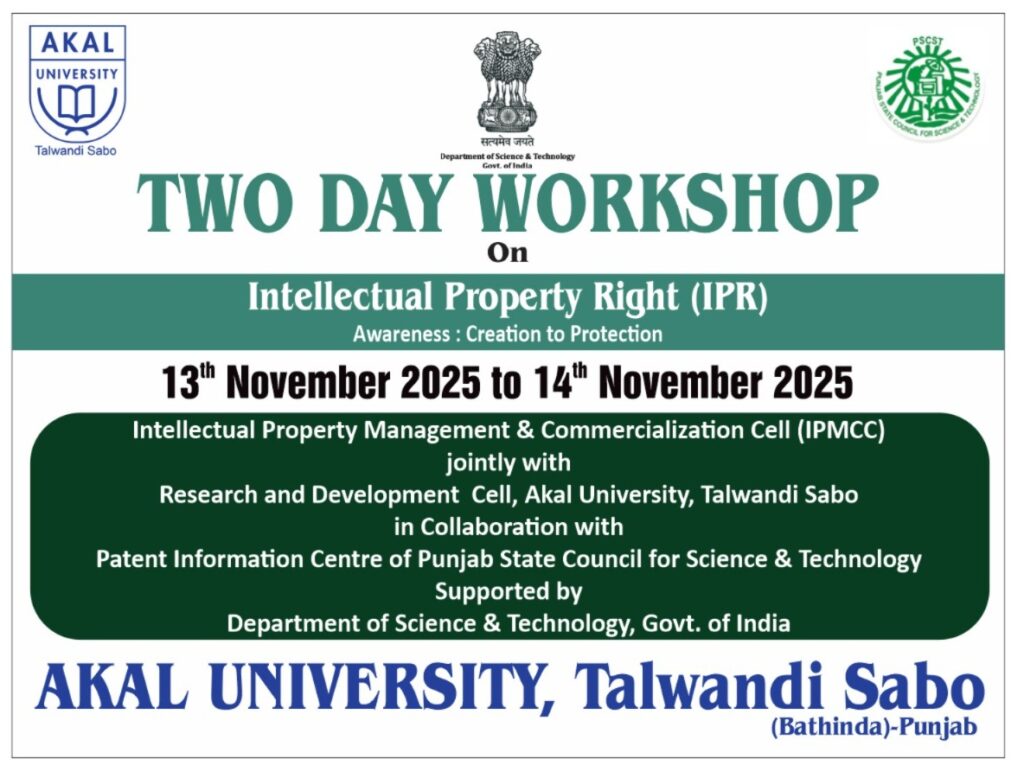 By jaspreetsingh@auts.ac.in 7 November 2025 No Comments Two-Day Workshop on Intellectual Property Rights (IPR) Awareness Two-Day Workshop on Intellectual Property Rights (IPR) Awareness
